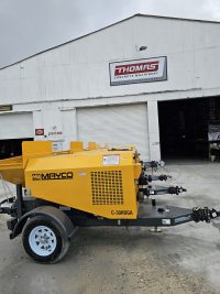 The Mayco C30HDGA is a strong and easy-to-use concrete pump made for tough job sites. It can pump up to 25 cubic yards (19 m³) per hour, making it great for small-aggregate concrete, masonry grout, shotcrete, and pressure grouting.